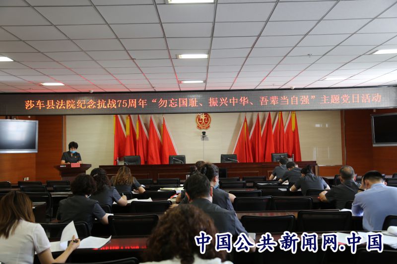 公共讯(蔡阳阳)为进一步深入开展新中国史学习教育,激发法院广大党员干警的爱国主义情怀和民族荣誉责任感,缅怀那段可歌可泣的峥嵘岁月,在纪念中国人民抗日战争暨世界反法西斯战争胜利75周年纪念日来临之际,莎车县人民法院机关党委组织各党支部开展了“勿忘国耻、振兴中华、吾辈当自强”主题党日活动。