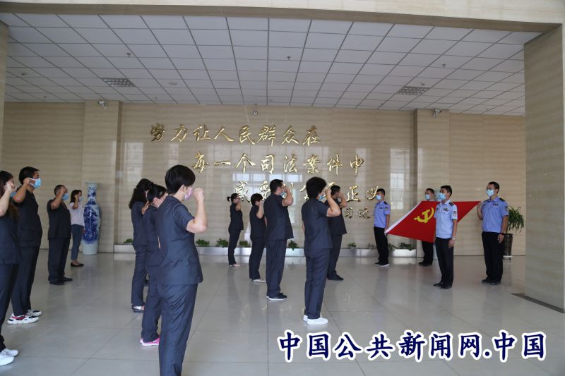 “我志愿加入中国共产党,拥护党的纲领,遵守党的章程……”,在院党组副书记、院长阿力甫江•买买提同志的领誓下,党员干警面对鲜红的党旗,右手齐肩握拳,重温入党誓词,使法院的党员干警又一次受到了心灵的震撼和洗礼,更加清楚地认识到自己所肩负的神圣责任和使命。