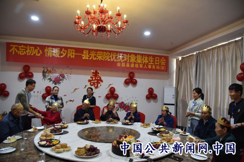 公共讯(赖地长生)喜迎祖国生日,共庆中秋佳节。会昌县退役军人事务局开展“不忘初心.情暖夕阳”活动,结合江西省退役军人“尊崇百万退役军人大走访、办实事”活动。10名工作人员带着生日蛋糕、生活用品等,带着感情走进光荣敬老院,弘扬尊老、爱老、敬老美德,给15名伤残军人、军烈属、重点优抚对象过集体过生日。在国庆、中秋佳节即将来临之际,让伤残军人、军烈属、重点优抚对象感受到党和政府的关心关爱和温暖,进一步营造尊崇军人的浓厚氛围。