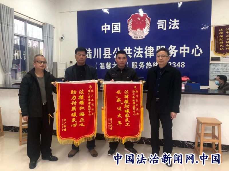 法治讯(黄渝 苏俊潮)2021年2月10日早上,冷雨迷蒙,正值年夜二十九最后一天班,在陆川县司法局公共法律服务中心窗口还迎来了2名农民工,他们冒雨送来了“法律援助暖农民工,安‘薪’过大年”、“法律维权昭正义,助力讨薪暖民心”等两面锦旗,2名农民工感激之情无以言表,紧握住黎崇东副书记的手激动的说“历时1年半,我们终领到钱过年了,太感谢您们了,你们是为民服务的好干部”。