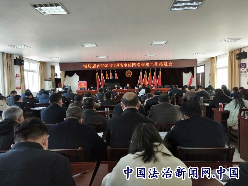 2021年2月20日上午,油坊店乡召开电信网络诈骗工作推进会,全体乡村干部参加会议。会议要求,乡村干部要提高认识,会后要立刻开始行动,通过线上在村民微信群内转发防范电信诈骗宣传知识和经典案例,让群众深入了解反电信诈骗知识,避免财产损失。包组联户干部线下扩大宣传,形成合力。
