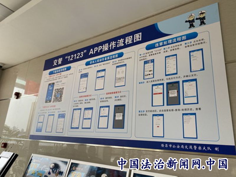 为减少群众到大队处罚大厅处理交通违章所需时间和路程,隆昌交警大队设立了“12123”APP操作流程图,指导群众使用“12123”手机APP办理违章处理业务,可直接在手机上处理交通违章,省去了群众到大厅排队的时间,以规范、高效的服务为广大办事群众带来全新体验。