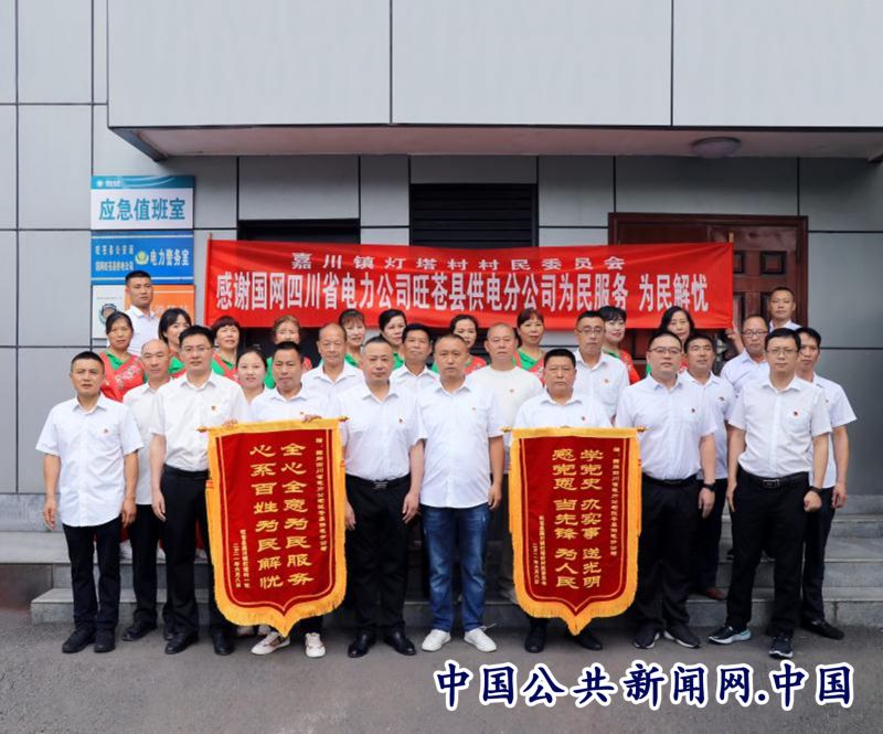 6月8日上午,旺苍县嘉川镇灯塔村党支部书记兼村主任许凯带领着村民将两面锦旗,分别写着“全心全意为民服务 心系百姓为民解忧”“学党史 办实事 送光明 感党恩 当先锋 为人民”送到国网旺苍县供电公司党委书记唐胜东手中,并代表灯塔村全体村民感谢供电部门尽心尽力解决群众用电之忧。